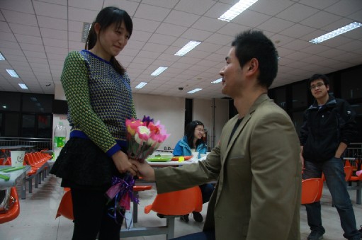 晚上7点30分,伴随着欢快的音乐,包饺子活动在潘娜和郑润民同学的精彩主持下拉开帷幕。大家将食堂工作人员和好的面和饺子馅儿以传气球、比速度的方式抢到手后,火速开始着手包饺子。短短十分钟,每一组都为了争当包饺子第一名而大显身手,通力合作,很快饺子盘就被摆的满满当当。为了增进男女同间的互动和默契,在煮饺子间隙进行的“你划我猜”的游戏,更加势均力敌,经过几轮厮杀才决出优胜。在最具期待的吃饺子大赛中,男女搭配喂饺子的游戏规则让男女生有了更进一步接触的机会,非常有爱。不出意外地,活动的最后的表白环节将全场的气氛推向了高潮。整场活动欢声笑语,气氛温馨热烈。