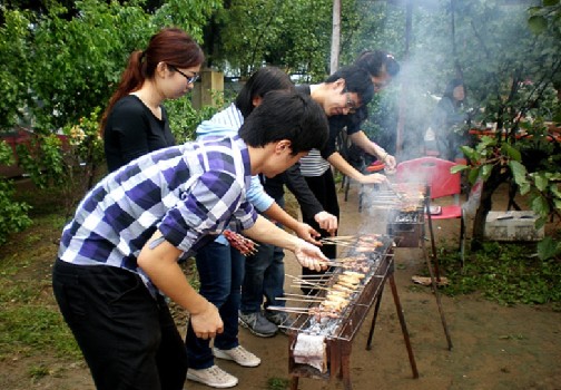 早上阴雨蒙蒙,但丝毫没有阻挡同学们出游的热情,大家整装出发的高涨情绪不久便赢得了天公的眷顾,转晴的天气让大家更加喜出望外地投入BBQ!在这场自给自足的战役中,大厨、吃货、女汉子纷纷崭露头角,大家一起DIY,互相品尝着各自的作品,欢声笑语弥漫着整个农庄!