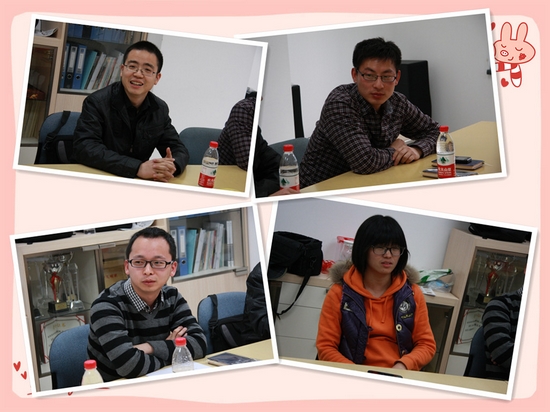 会议在轻松的交流与互动中进行,栾世超学长首先介绍了自己在找工作中的见闻,大学生职业测评的重要性,学术在求职中的重要程度,并提出了自己在面试中可供参考的一些技巧。黄帝学长则分享了自身在清华进行博士后学习工作的一些体验,对期望能继续从事学术研究的同学,提出发现自己的兴趣点的重要性;并结合当年公务员考试、高校求职的亲身经验,建议博士生提前做好自身职业发展规划,确定自己未来的方向,避免走弯路。鄢寒学长简要叙述了博士生在选择就职事业单位,行政机关等单位的基本流程,并劝告在读博士生,尽量争取出国学习的机会,能有效提升自己。毕翠霞学姐则介绍了博士研究生从事研究性机构的过程中,项目与论文经历与英语水平的重要性。
