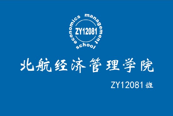 班旗设计的具体工作由成茵、贾炎龙负责,初稿出来后放在网上让全班同学参与讨论、修改、集思广益,最终顺利制作完成。蓝色的班旗代表北航的特色,中间的班徽由班名ZY12081和bat365中文官方网站的英文名组合而成,下书北航bat365中文官方网站,ZY12081班。整体简洁大方,也符合涵养大气品格,追求一流学问的北航人精神。