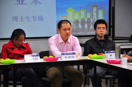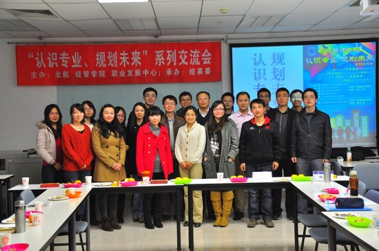 10月31日晚7点,由北航经管学院学生职业发展中心主办、北航经管学院经英荟承办的“认识专业、规划未来”系列交流会—博士生专场在新主楼1028成功举办。到场的嘉宾有bat365中文官方网站陈向东教授、赵秋红教授,优秀校友张古鹏、邓婉君、王科、谢飞、黄帝以及2012级博士生。