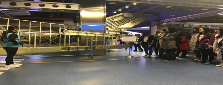 同学们浏览完一层的航空展厅后,通过楼梯步入空天走廊,目睹了航空、航天科技史,这些历史足迹如奇迹般地向同学们展示了我国航空工业、航天技术的成就,这不禁让我们感叹到我国航空航天如此迅猛的发展以及我国强大的航空科技。