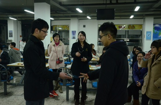 三月,是一个草长莺飞的季节,是一个充满春天气息的月份。为体现经管学院特色,为营造经管学院独有的温馨氛围,本次活动希望通过一起过生日的方式,促进大家之间的相互交流,让大家进一步地感受到经管学院的温暖。活动在一片快乐的气氛中开始了,在主持人致辞之后,在游戏主持人的带领下,大家参与了第一个游戏——“一块五毛”, 游戏规定同学们分两组对抗,每组男女各三人,女同学为“一块”,男同学为“五毛”,由主持人随意说出一个钱数,哪组最先完成正确组合为胜出方。在几轮激烈的对抗之后,两组同学分出了胜负,负方接受了有趣的惩罚。