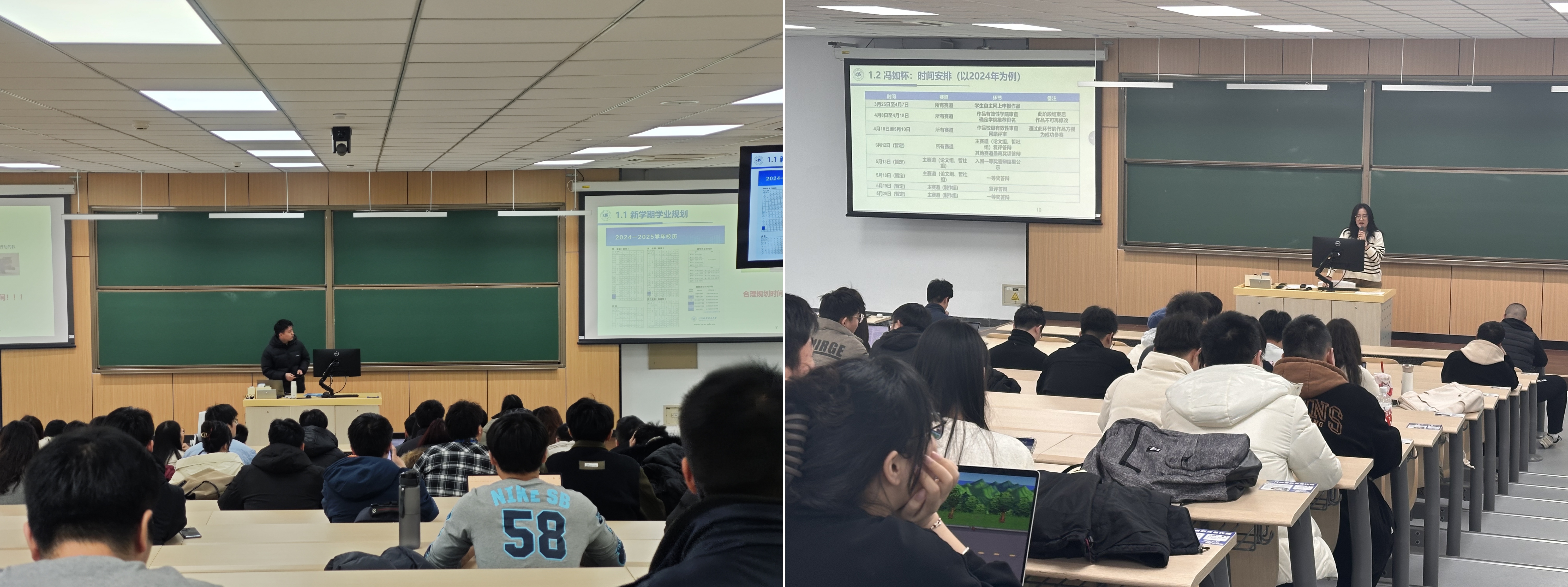 在大班会上,学院研究生兼职辅导员米赟、张勋围绕学业规划、职业发展、心理健康、安全教育等多个维度,为同学们送上了细致且实用的提醒。专职辅导员朱帅东、陶雨芊也为同学们送上了暖心的关怀与提醒,让同学们在满满的关爱中,对未来的学习生活有了更为明晰的认知与充分的准备。