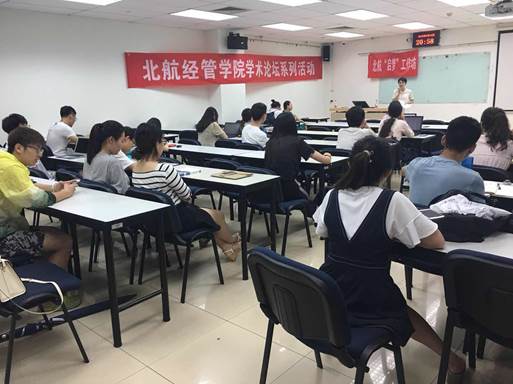 2018年5月15日晚上20:00,由北航经管学院学术论坛、北航“启梦”工作坊、联合主办的职业辅导讲座“职场戏精该被diss吗?”在新主楼A座1028成功举办。讲座邀请到北京人民广播电台FM98.2《职场有高招》出品人,教育部创新创业入库导师袁玮女士为研一、研二的学生进行职场专题报告会,并邀请到研究生工作办公室主任衣萌老师到场参会。