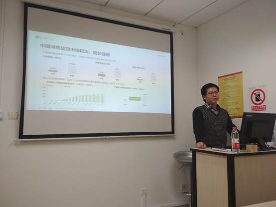 黄师兄首先介绍了中国信贷市场的良好发展趋势,以及信贷行业的优势,还讲了一些案例分析,比如运营商数据反欺诈、数据应用和建模等。最后介绍了其所在企业的人员需求,主要有金融产品经理、风控产品经理、风控建模、数据科学家等岗位,欢迎同学们的加入!