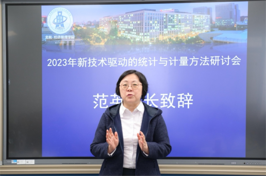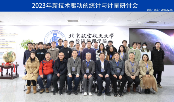 2023年12月16日,2023年新技术驱动的统计与计量方法研讨会在北航新主楼举办。本次研讨会邀请了12位统计与计量领域资深学者和4位优秀在读研究生分享他们的科研成果,共同探讨了新技术背景下的统计与计量方法研究的最新进展。