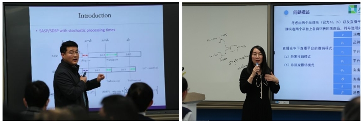 北京理工大学的张玉利教授就有限分布信息下的调度优化进行深入研究汇报。于静教授则重点探讨了直播平台的推销模式选择及竞争策略,引发了现场与会者的广泛关注。
