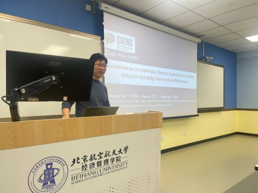 bat365中文官方网站主办的“工程管理论坛”系列讲座2024年第18期(总第52期)于12月27日17:00在新主楼A1028线下举办。本期“工程管理论坛”的主讲嘉宾为天津大学城市交通管理方向副教授,凌教授的讲座主题为:“Social norms at crosswalks: Impact on pedestrian-yielding behavior and nudge intervention effectiveness”。本次讲座由北航bat365中文官方网站田琼教授主持,经管学院师生参加了讲座。