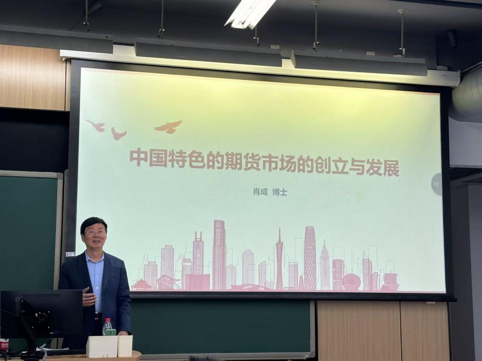 2025年3月23日,由北航经管学院金融专业硕士教育中心主办的应用经济学实践前沿讲堂第二期《期货市场发展与服务实体经济》在北航新主楼A1148圆满落幕。本期讲堂由赵尚梅教授主持,特邀中国期货业协会战略与发展委员会委员、广州期货股份有限公司外部董事、行业领军人物肖成博士担任主讲嘉宾。肖成博士为中国药科大学理学学士、中国社会科学院经济学硕士、南开大学经济学博士,1994年投身资本市场,深耕期货领域三十余年,兼具学术造诣与实践经验,主导完成中国期货业首例海外全资收购(英国NCM期货公司),并推动广州期货分类评级从B类跃升至A类,保证金规模突破百亿。其著作《中国期货市场前沿问题研究》《英汉证券期货大辞典》被中国证券博物馆收藏,学术与实践成果丰硕。