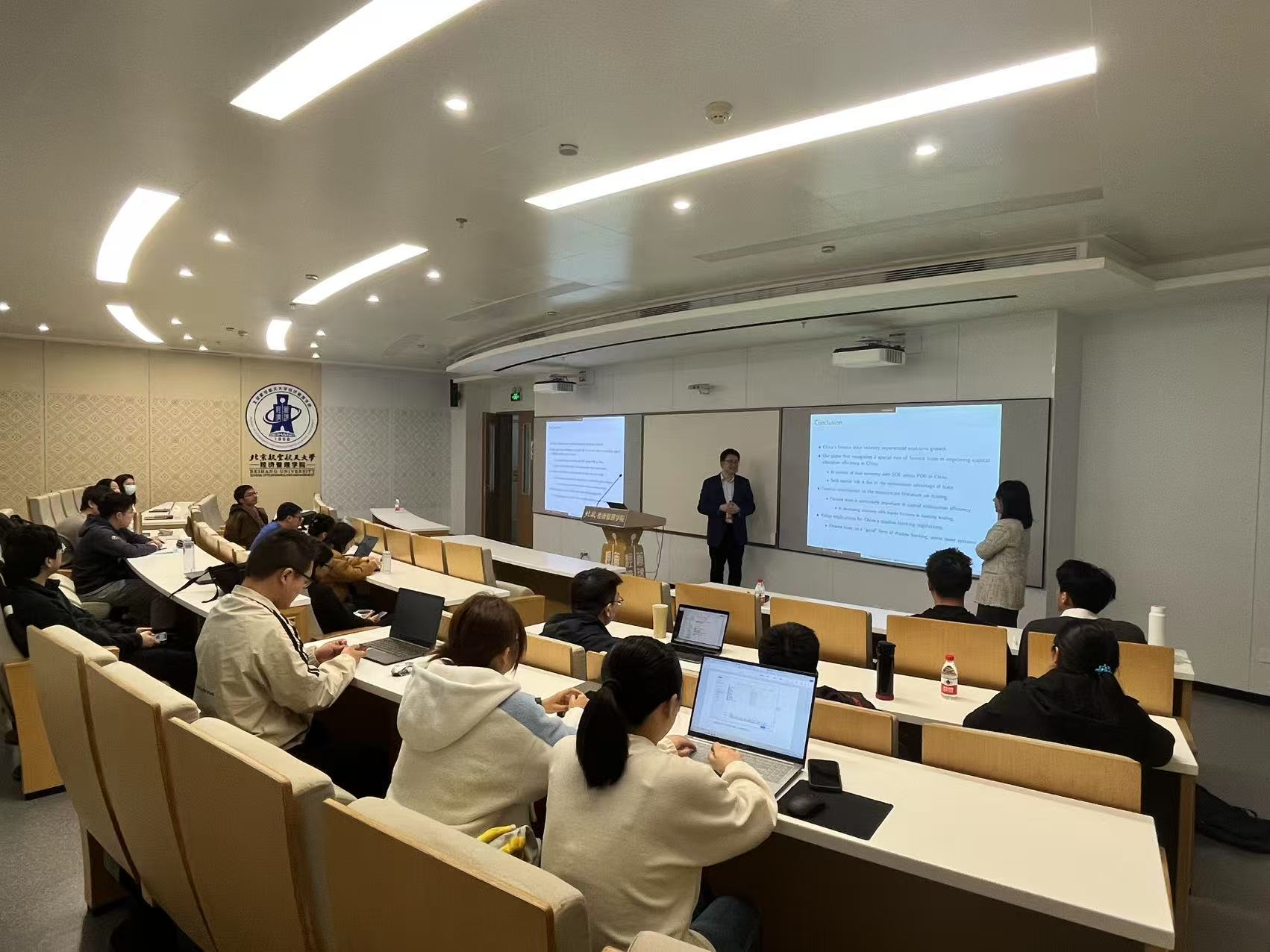 2025学年第1期融实论坛由北航bat365中文官方网站金融系部慧副教授主持,经管学院洪洁瑛副教授、金昊副教授、石丽娜博士、李伟博士、王论意博士等经管学院老师们参与了本期论坛的交流。北航经管学院的博士生、普硕、金融专硕、本科生等各个培养项目的学生们参加了本期学术交流活动。