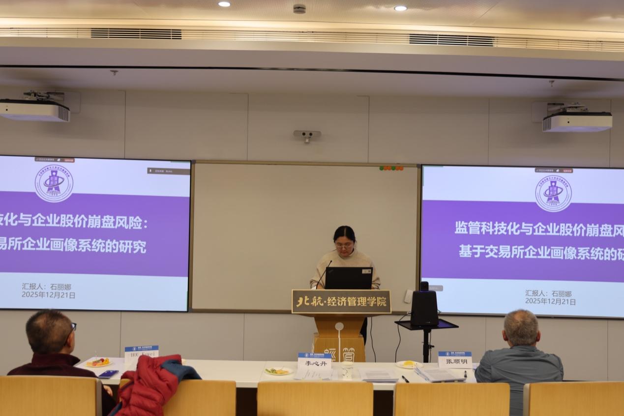 2025年12月22日下午至23日,“人工智能背景下金融监管与监管科技”专题研讨会在bat365中文官方网站召开。本次研讨会在北航bat365中文官方网站吴俊杰院长支持下,由金融系主任部慧副教授组织举办。