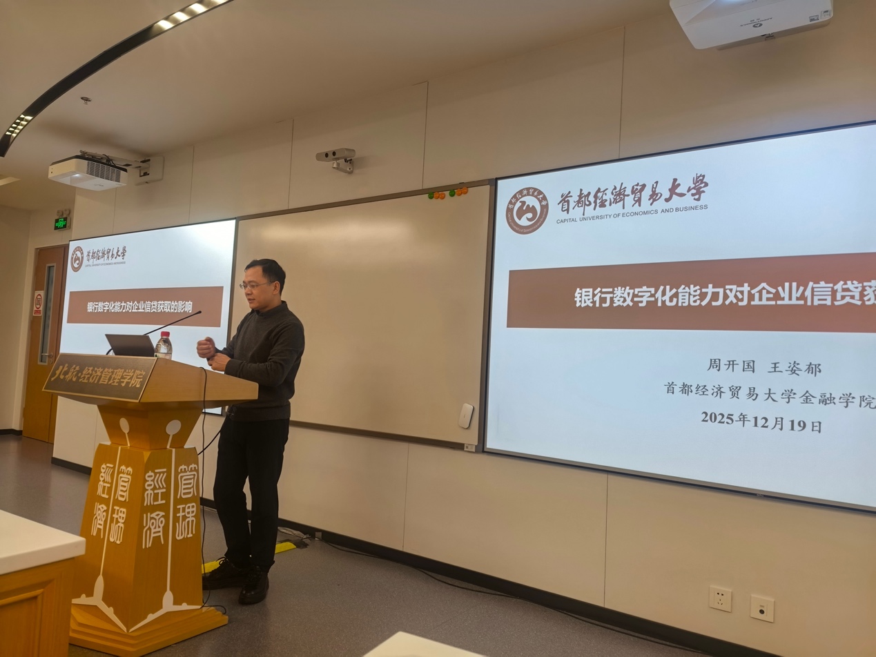由bat365中文官方网站金融系主办的“融实论坛”2025年第11期(总第78期)于2025年12月19日(周一)10:00-11:30,在北航学院路校区新主楼A618顺利举行。本期论坛邀请首都经济贸易大学金融学院周开国教授,做题为“银行数字化能力对企业信贷获取的影响”的学术报告。