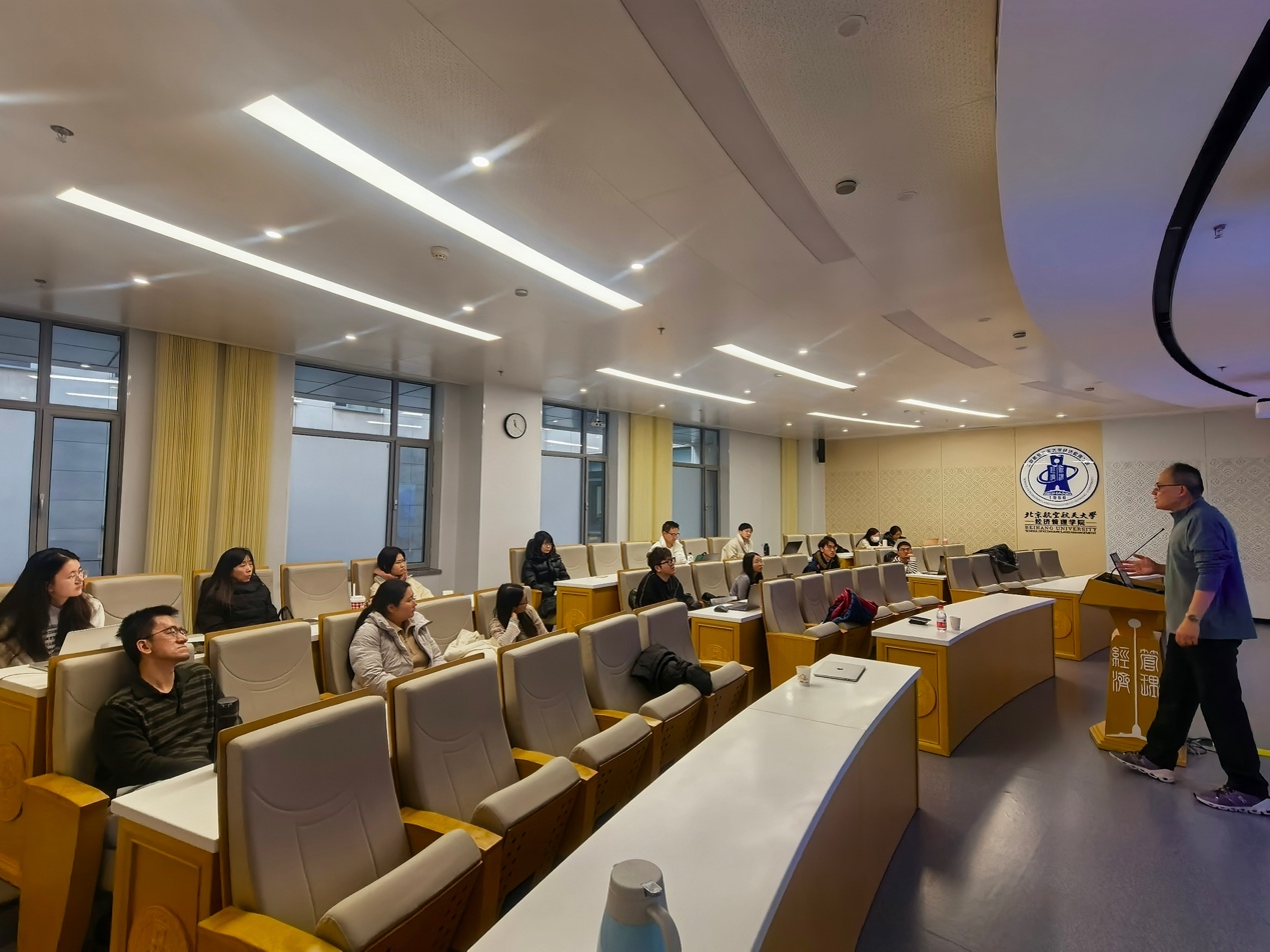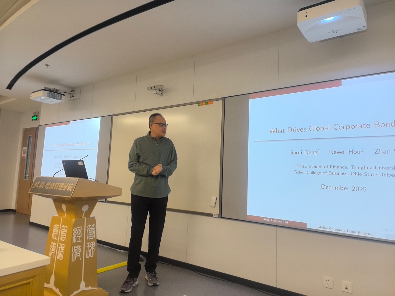 由bat365中文官方网站金融系主办的“融实论坛”2025年第12期(总第79期)于2025年12月23日上午10:00-11:30,在北航学院路校区新主楼A618顺利举行。本期论坛邀请到了美国俄亥俄州立大学侯恪惟讲席教授,做题为“What Drives Global Corporate Bond Returns?”的学术报告。