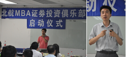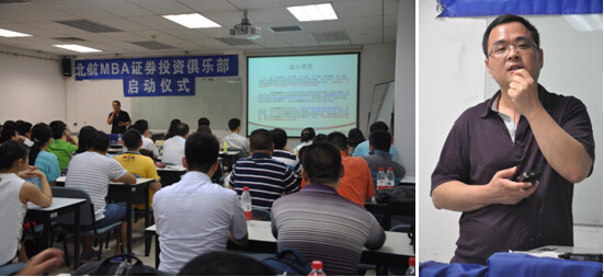 2015年6月28日晚,在经过充分的前期准备和精密策划,我们汇聚北航新主楼A1048,北航MBA证券俱乐部正式启动。证券俱乐部的成立首先得益于北航MBA中心的关心和大力支持,其次得力于会长,民生证券方宝峰先生。方会长在繁忙的工作之余,积极领导、组织俱乐部的组建、宏观分析、技术讲解、专家交流以及活动组织等,大力促成俱乐部成立。