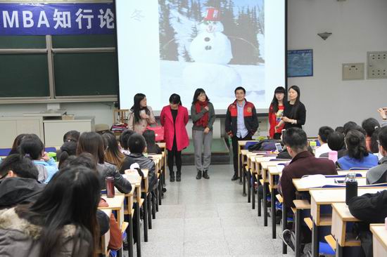 李老师以一部著名电影的经典片段作为开端,结合近年来发展迅速的国际服装色彩理论讲起,为大家详细解说大自然色彩的冷暖分析方法。她还组织同学现场演示人的皮肤特质与色彩搭配的关系,根据人们肤色、瞳孔色、唇色和发色等身体自然特征,诊断出个人的从属色彩,确定最适合自己的色彩群,从而找出不同场合的最佳用色。在搭配服装的同时,巧妙地运用丝巾、帽子、腰带等配饰来凸显整体效果。考虑到MBA同学来自职场,针对同学们对职业装理解的误区,李老师还着重讲解了男女职业装穿着要点及原则。课堂气氛在李老师的带动下始终保持高度活跃。
