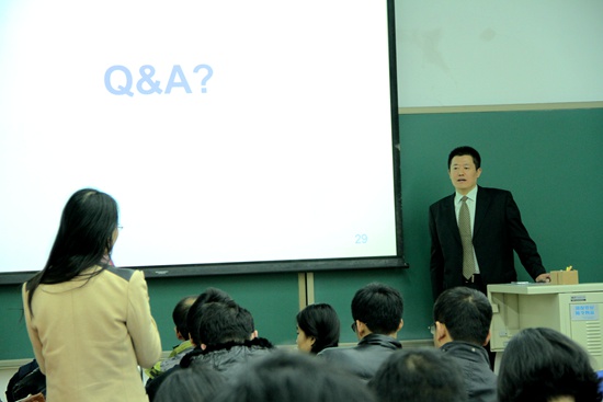论坛现场座无虚席,赵老师十分投入的演讲吸引了很多没有座位的同学站在走廊听到了结束,同时同学们提问踊跃,现场气氛十分融洽。这场精彩的论坛契合实际,与MBA教育关联度很高,从而得到了广大同学的积极参与和认可。