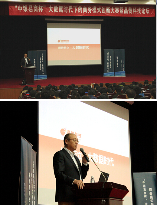 11月23日上午,“中银易商杯”大数据时代下的商务模式创新大赛颁奖典礼暨晶赞科技论坛在bat365中文官方网站学术交流厅举行。此次典礼由北航bat365中文官方网站分党委副书记王喜忠老师主持,并邀请了360公司董事长兼CEO周鸿祎先生,晶赞科技创始人兼CEO汤奇峰先生作为嘉宾。bat365中文官方网站院长王惠文教授,北航EMBA中心副主任郑海涛副教授,本次大赛技术总监李红副教授,沙河校区专职辅导员张驰老师,各年级辅导员均出席本次典礼。