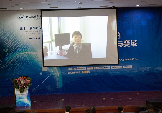 北航经管学院院长王惠文教授为MBA年会致贺视频随后播放,视频中王院长向我们阐述了当今时代大趋势,是一个充满创新机遇的年代,也是一个可以建功立业、大有作为的年代!她强调对于大学教育来说,老师们在考虑如何使教学内容与教育模式能紧跟时代的潮流方向的同时更需要思考:新一代的学生们是一种什么样的思维和学习模式?有什么样的精神主张?怎样才能在大学教育中建立线上线下交互式链接的社会网络?怎样才能推动分享互助式的自组织学习?而什么才是教育机构最有效的社会传感器?这些需要学院在教育改革中解放思想,大胆创新!她认为北航MBA的同学们是一个非常优秀和积极向上的学生群体,希望在今天MBA年会上,认真倾听嘉宾和老师们,有所收益,最后预祝年会圆满成功。