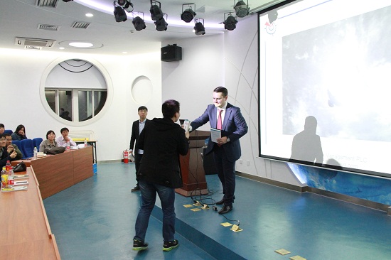Gleb Arhangelsky博士还向我们介绍了一些时间管理的小技巧,比如记录下一些关键事件从而不断的自我提醒、经常进行自我激励和自我奖励,从而使自己保持热情。在讲座的最后,同学们踊跃地向Gleb Arhangelsky博士咨询有关时间管理上的困惑,Gleb Arhangelsky博士也结合自身经历,精彩地解答了同学们的疑问,并向5名提问同学赠予授书。
