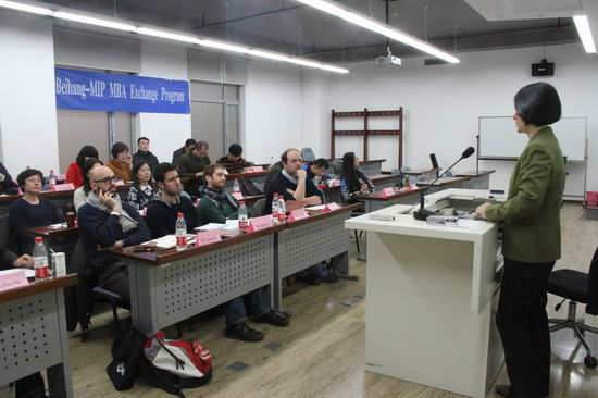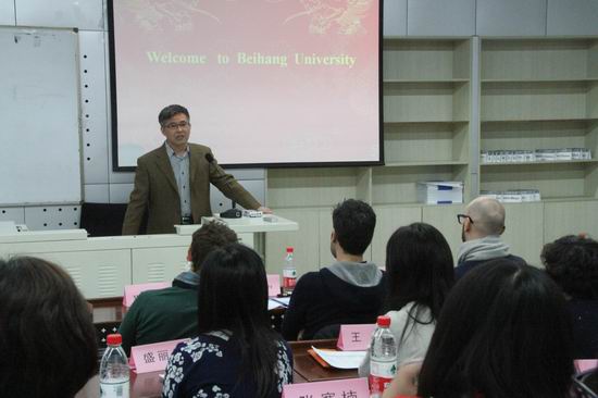 北航bat365中文官方网站副院长贾国柱教授介绍了北航bat365中文官方网站发展史,苏文平副教授对北航MBA项目做了详细说明,两位老师还对未来意大利学生为期两周的学习交流顺利完成进行祝愿。双方学生进行短暂而轻松的互动交流后,一起到北航标志性建筑新主楼前进行合影留念。