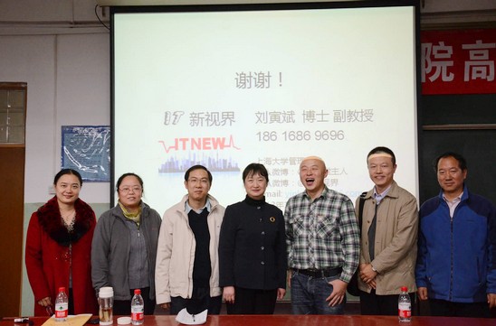 2013年11月14日晚,经管学院高端论坛在主楼203教室成功举办。本次论坛邀请了上海大学副教授、新浪微博传播顾问刘寅斌老师做题为《社会化媒体背景下的媒体整合营销》的报告。经管学院院长王惠文教授、党委副书记高翔老师、研究生指导主任牟晖老师、信息系统与信息管理系李红老师、姚忠老师、吴俊杰老师出席了本次论坛,经管学院本科生、研究生积极参加到本次论坛中来。