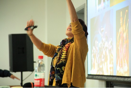 田培培教授此次给大家带来的讲座主题为“边走边跳”。讲座中,田培培教授围绕“远古走来的舞蹈艺术”、“舞蹈艺术与生活”、“舞蹈是人类艺术的皇冠”三个方面向大家介绍了舞蹈的起源、舞蹈的分类以及舞蹈的魅力。语言活泼生动,不时地穿插舞蹈视频和舞台表演,让在场的同学们惊叹之余情不自禁的送上阵阵掌声。当讲到各民族舞蹈的差异时,田教授在台上即兴跳起了各民族的舞蹈,或迅疾,或婀娜,或热情,或柔缓。丰富多彩的变换使得大家对于中国不同地区的舞蹈和传统文化有了更为深刻的理解。从始至终,田教授展现着极大的热情为同学们普及了舞蹈方面的知识。同时,田教授还指出舞蹈艺术对于人的性格有着巨大影响,能够带给人不同的收获与体验。最后,田教授从“舞蹈的高贵与真实”、“舞蹈表演者的基本职业特征”、“舞蹈编导者的职业特征”、“舞蹈作用的分类”、“舞蹈艺术的本体特征”等五个方面详细阐述了舞蹈艺术的独特之处与魅力,鼓励大家走近舞蹈,发现舞蹈的魅力,感受舞蹈所带来的美与感动。