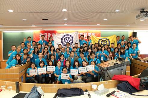 5月5日上午,2013EMBA商管联盟高峰会暨商管杯个案论剑正式在台湾政治大学拉开帷幕,来自海峡两岸多所名校的EMBA、MBA学子同台PK。北航4名MBA学生与台湾科技大学4名EMBA学生共同组成“美力京虎队”,参加了中华组的竞赛,最终以一分之差取得了第二名的优异成绩,斩获中华组银奖。北航学子用他们的青春活力、雄厚实力和优秀素质征服了现场的评委和观众,展现出北航MBA学子们德才兼备、知行合一的精神风貌。