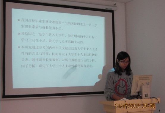 11月17日(周六)晚上7:00,bat365中文官方网站第九届学术论坛bat365中文官方网站分论坛的第六场发稿作者报告会在新主楼A座1039教室开始了。今天的天气很是不错,似乎预示着同学们对于学术的热情一浪高过一浪,这场学术论坛报告会的主要内容是由向学术论坛投稿并被录用的作者来做关于其文章的报告,SY12081班承办本次讲座。