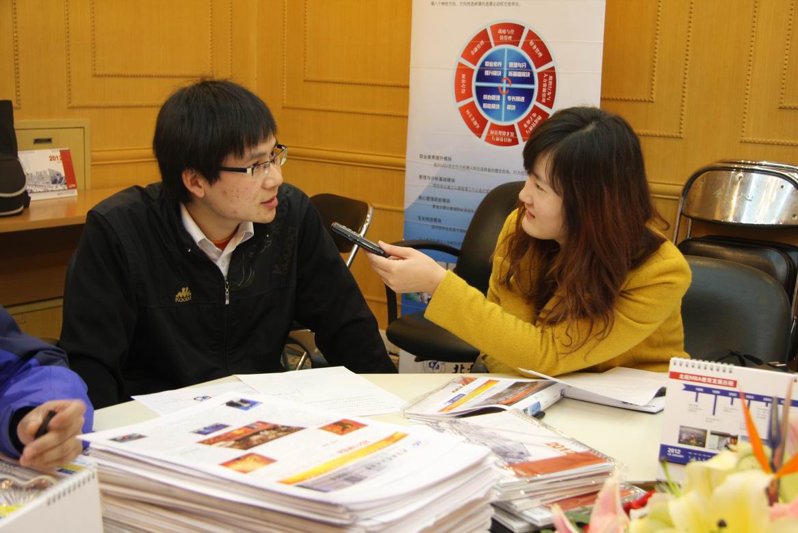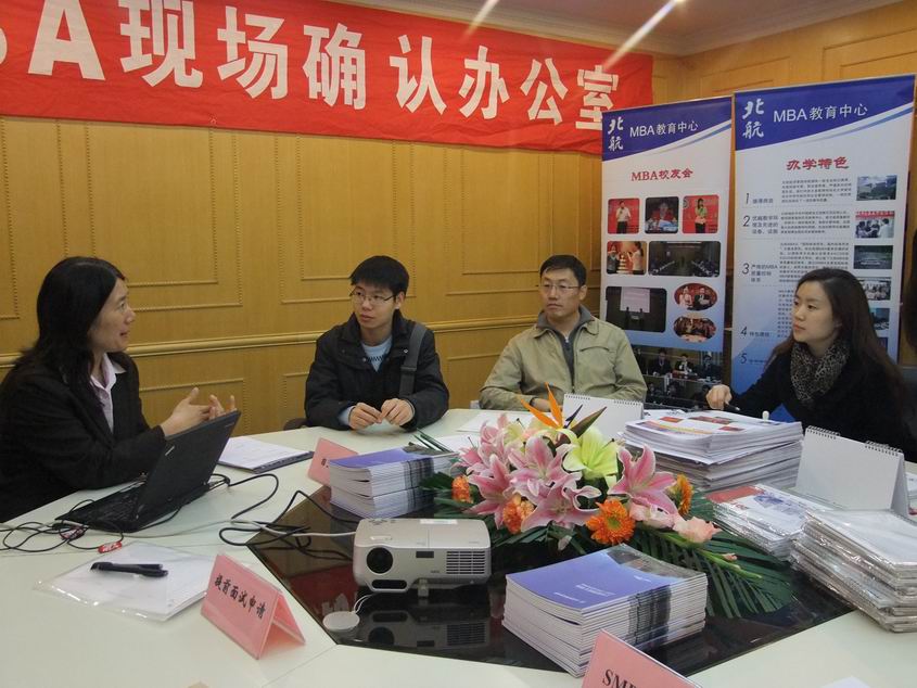 作为全国MBA综合改革试点院校的北航经管学院,为全面做好2012年MBA现场确认工作,基于专业化管理、人性化服务的理念,在总结前两年成功设立“北航MBA现场确认办公室”的成功经验基础上,北航MBA教育中心继续在研究生报考确认现场期间推出一系列人性化服务举措。11月初MBA教育中心在深入调研的基础上完成了现场确认期间的工作安排:10日至14日,中心主任苏文平副教授、副主任武欣副教授、副主任柏满迎教授及中心负责招生宣传老师们悉数在现场确认办公室办公,每天还有2—4名MBA学员到现场担当志愿者,共同为考生提供北航MBA招生政策咨询、2012MBA提前面试报名、2012SMBA报名、宣传礼品派发、校友交流、休息休整等温馨服务,并推出了“赢在第四起跑线”—MBA职业生涯规划读书会、北航MBA知行论坛等系列活动。