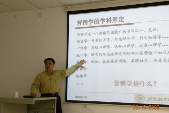 2009年10月30日晚7:00,新主楼A1048,经管学院学术分论坛第四场讲座在同学们的期盼中开始,这次做客论坛的是黄劲松博士,他给同学们带来一场主题为《营销学研究方法及其在理论和实践中的应用》的讲座。