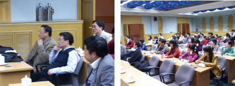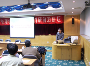 讲坛于晚19:00开始,由经管学院科研副院长陈向东主持。两位学者分别做了《管理科学十一.五发展战略与优先资助领域研究》的报告和《社会经济行为建模及其相关问题》的报告。讲坛气氛轻松,用通俗的语言向在座的青年教师及学生讲解了如今管理科学研究的前沿动态以及发展的方向,对于发表论文的一些技巧也给予了一定的解释。
