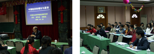 29日上午在如心报告厅,北航经管学院应用经济学科带头人任若恩教授、清华大学经管学院经济系主任白重恩教授应邀出席了本次讲坛。任教授介绍了《经济学前沿问题》研究的进展,白教授做了《中国经济与经济学发展》的学术报告。他们的学术报告生动地将中国经济发展与国际学术规范联系在一起,为在座的青年教师和硕士生就如何以科学严谨的方式从事国际水平的研究上了生动的一课,并积极热情地回答了教师和学生的提问。