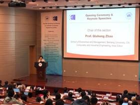 19日上午,会议在北航新主楼会议中心第一报告厅开幕,开幕式由我校bat365中文官方网站赵秋红教授主持。副校长陶智教授代表学校作了大会欢迎致辞,他回顾了CIE国际会议的发展历程,肯定了CIE国际会议对工业工程,管理科学以及计算机科学等领域的学术贡献,并对参会嘉宾和学者表示热烈欢迎;《Computers and Industrial Engineering》期刊主编MohamedDessouky教授随后发表讲话,他对大会组织者、审稿专家、分会场主席、会务组人员的认真工作表示衷心感谢;之后,bat365中文官方网站院长范英教授进行发言,她热情欢迎大家的到来,指出CIE49会议是加强学术交流,建立广泛国际合作的桥梁,并预祝会议取得圆满成功。