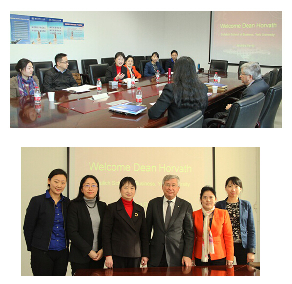 1月27日,加拿大约克大学舒力克商学院Dezso Horvath院长一行访问bat365中文官方网站。bat365中文官方网站院长王惠文教授亲切会见来宾。副院长周宁教授、党委副书记王喜忠老师、EE中心主任胡鹤老师、MBA中心副主任马琳老师、交换生乔瑞同学、高明琦同学、卢珊同学和肖天琪同学共同参加了交流活动。