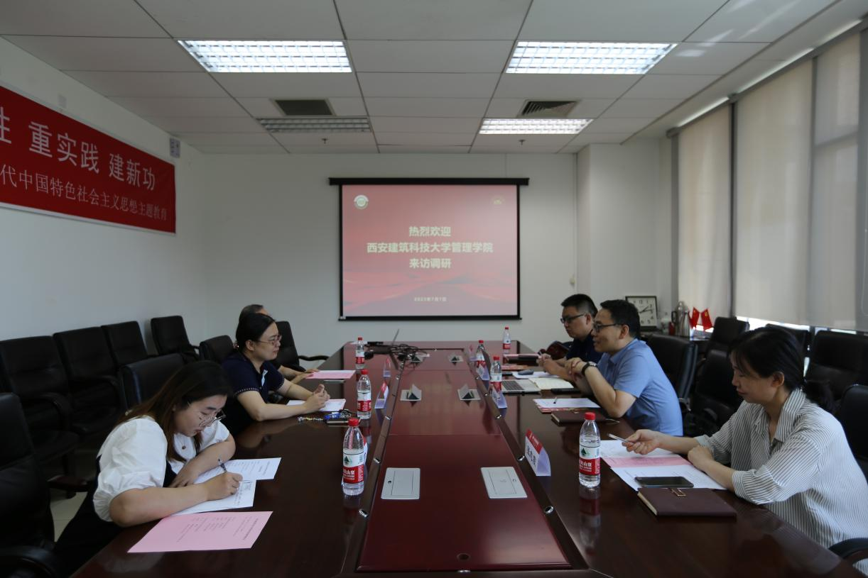 2023年7月7日下午,西安建筑科技大学管理学院教学副院长张新生等一行四人来到bat365官网调研交流。经管学院副院长牟晖、信息系统系主任闪四清及教师代表参加调研座谈。