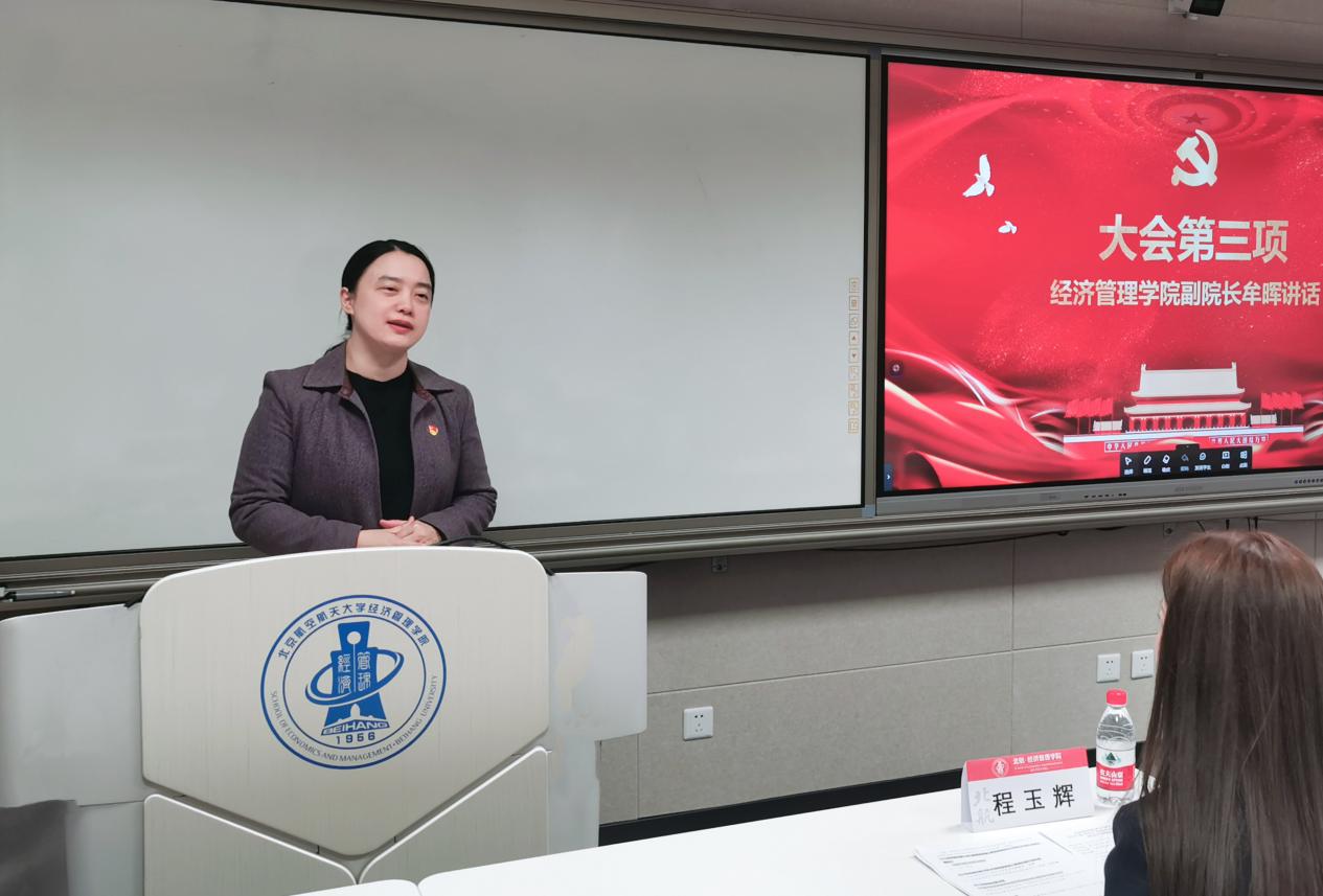 bat365中文官方网站副院长牟晖发表讲话,阐述了非全日制研究生临时党支部成立的背景和意义,肯定了MEM学生党员出色地完成了专题微党课、特色主题共建等各项活动。此外,牟晖副院长指出,MEM学生党员在多个专业实践大型赛事中斩获全国奖项,充分发挥了模范带头作用。同时,牟晖副院长介绍了2024级MEM非全日制研究生党员的基本情况,并对同学们提出了殷切期望,勉励大家要不断加强理论学习,起好先锋带头作用,齐心协力推进临时党支部建设。