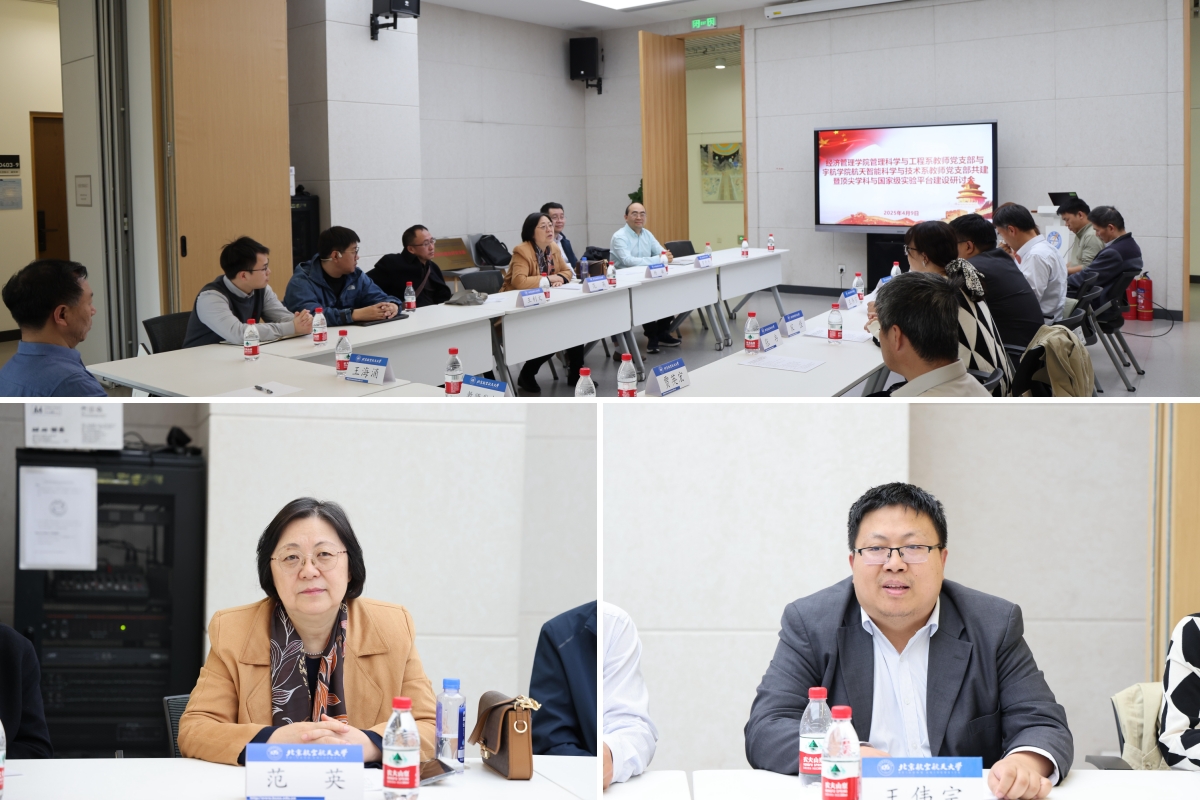 为深入贯彻落实党的二十大关于科技创新体系建设的战略部署,深化基层党建与学科发展融合机制,2025年4月9日下午2点30分,北航bat365中文官方网站管理科学与工程系教师党支部与宇航学院航天智能科学与技术系教师党支部在沙河校区主楼D409举办党支部互联共建暨顶尖学科与国家级实验平台建设研讨会。bat365中文官方网站院长范英,宇航学院书记徐亚军、院长王伟宗,管理科学与工程系教师党支部书记罗开平、航天智能科学与技术系教师党支部书记王可东等共20人参加。