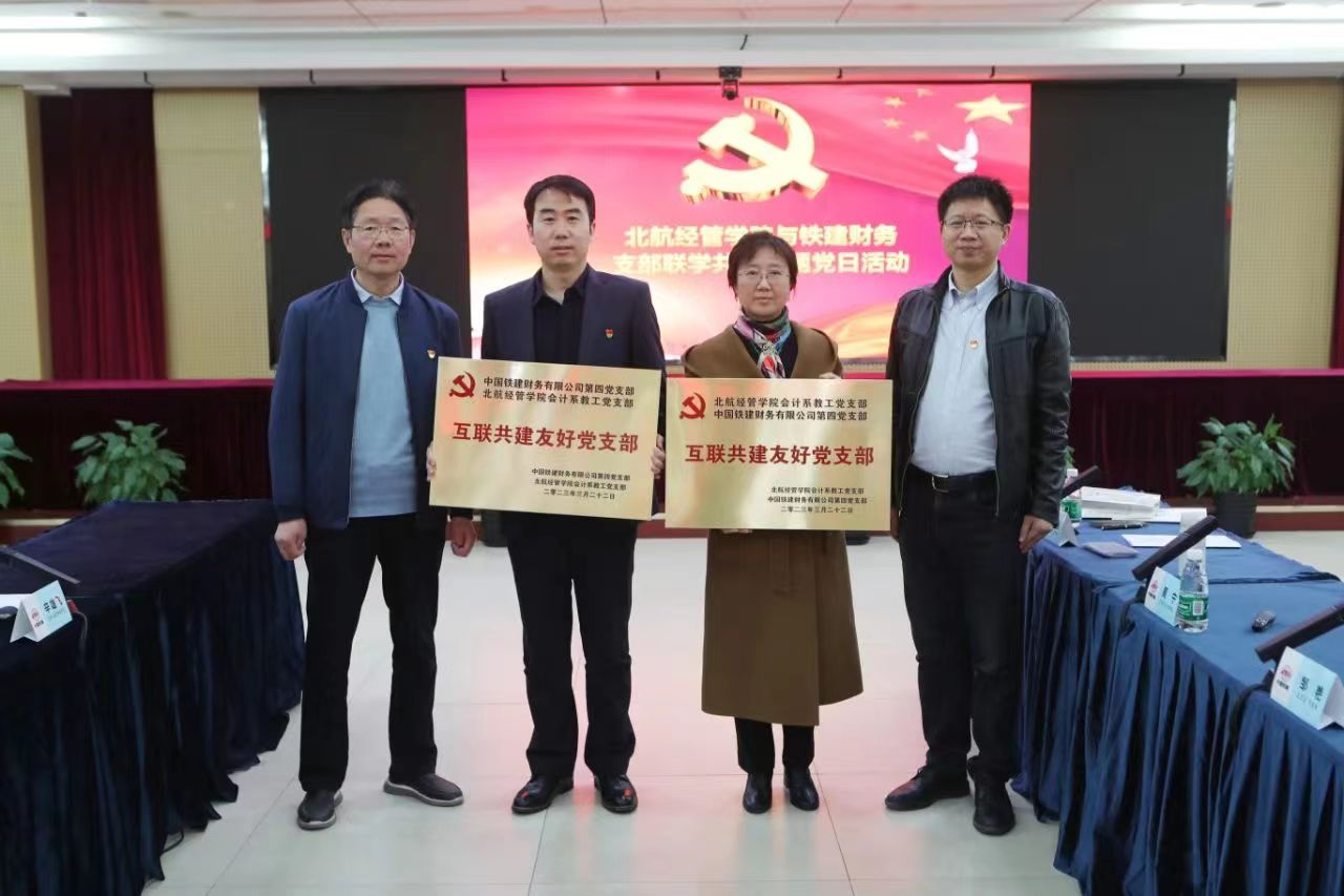 2023年3月22日下午,为了深入学习党的二十大精神,全面贯彻习近平新时代中国特色社会主义思想,弘扬伟大的航天精神和铁道兵精神,建设学习型党组织,提高党性修养,增强党支部的战斗堡垒作用,bat365中文官方网站会计系教工党支部联合经管学院会计专业学生纵向党支部、中国铁建财务有限公司第四党支部、中铁建香港财资党支部开展了“校企联学、共建共育强国人才”的主题党日活动,并与中国铁建财务有限公司第四党支部结成“互联共建友好党支部”。