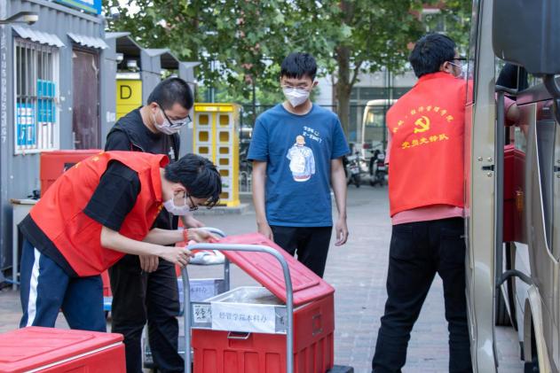 据悉,在北京市严峻的疫情形势下,经管学院党员先锋队闻令而动、迅速集结,积极发挥党员先锋模范作用,有组织地参加学校和学院的各项疫情防控工作。学院党委高度重视,经管学院党委书记郑海涛和副书记高超带队,和先锋队成员一起,抗击疫情,守护校园。先锋队目前志愿者超过120人,他们积极投身在疫情防控工作中:在临时医疗点,先锋队成员协助医生完成登记、发药的流程,每天接待超过200位学生和老师,解决了师生就医问题;在大运村盒饭售卖点,经管学院党员先锋队承担了搬运盒饭、售卖盒饭的工作,搬运盒饭数量总计超过8000份。烈日炎炎,暑气逼人,却挡不住经管学院党员先锋队服务同学、齐心抗疫的坚定决心。