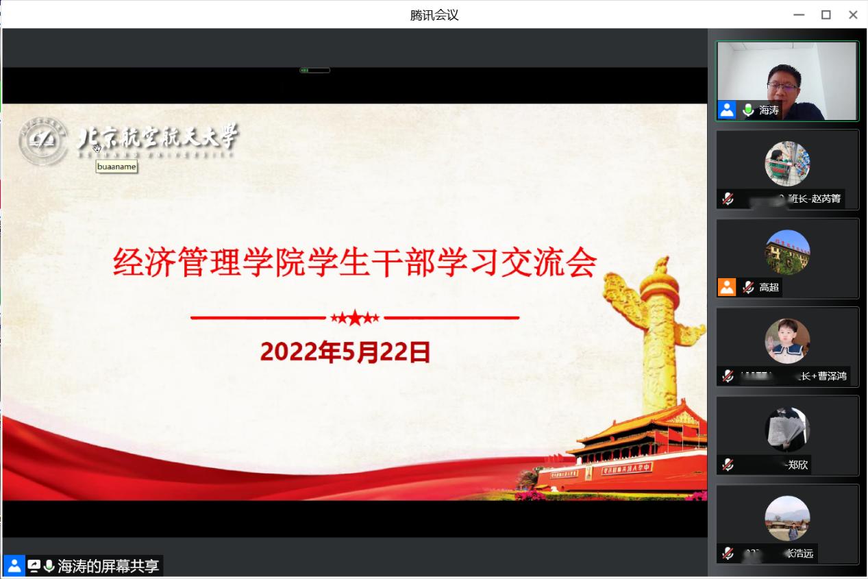 2022年5月22日,bat365中文官方网站以视频会议的形式开展专题党课暨学生骨干学习交流会。本次会议中,学院党委书记郑海涛讲授专题党课,学院党委副书记高超主持会议,分团委书记朱鹏宇、专职辅导员衣萌、白雪、唐鹏飞、学生党支部书记、学生骨干90余人参加学习。