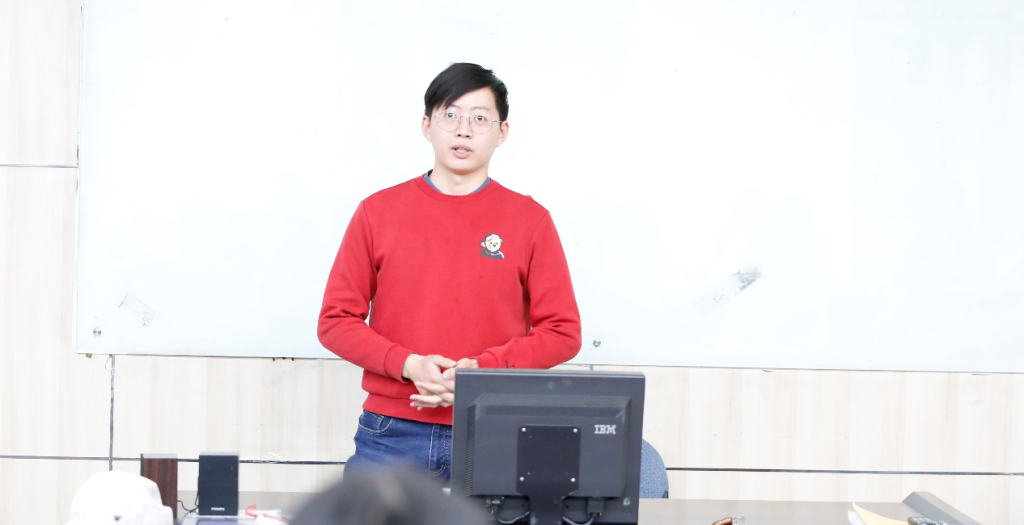 机关教工党支部衣萌、本科1808(二)党支部丁得彬、SY2108(一)党支部戴雯等三位党员在现场作“微党课”展示。