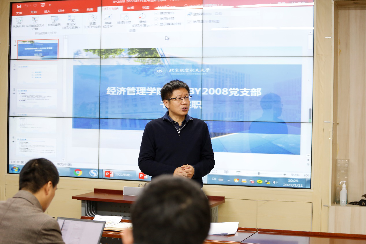 郑海涛在总结时指出,各支部的工作很扎实,希望各位党支部书记在新的一年里再接再厉,发挥好学院的党建优势,创新组织生活形式和内容,积极探索资源、出谋划策,学院也会一如既往支持特色活动。同时,要更加关注考勤管理和学做结合,要切实将党的创新理论学以致用,希望各支部持续围绕党史开展“四史”教育,在党建带动班建、密切联系群众方面再下功夫,及时编制整改方案,列出整改清单,逐项抓好整改落实,整改进度在支部党员大会上进行通报。