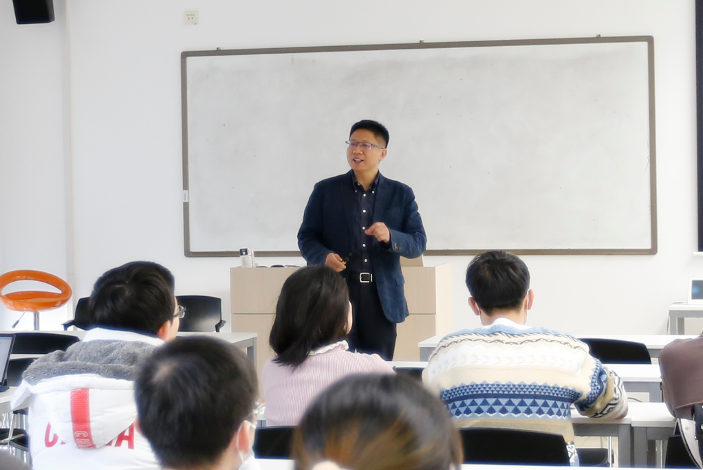 2021年12月14日下午,bat365中文官方网站党委书记郑海涛讲授党的十九届六中全会精神专题党课,师生支部书记、学生工作负责人、师生党员代表、专职组织员近60人参加学习。