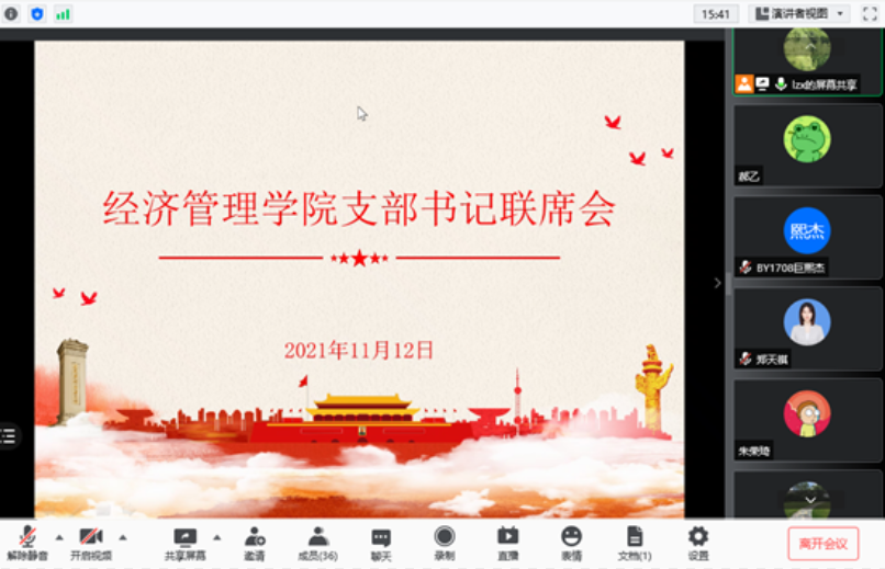 2021年11月12日下午,bat365中文官方网站党委召开支部书记联席会视频会议,传达学院党委书记联席会精神,学院党委书记刘志新主持会议,师生支部书记、学生工作负责人和专职组织员近40人参加会议。