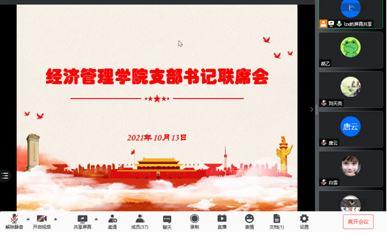 2021年10月13日中午,bat365中文官方网站党委召开支部书记联席会视频会议,传达学院级党委书记联席会精神,学院党委书记刘志新主持会议,师生支部书记、学生工作负责人和专职组织员近40人参加会议。
