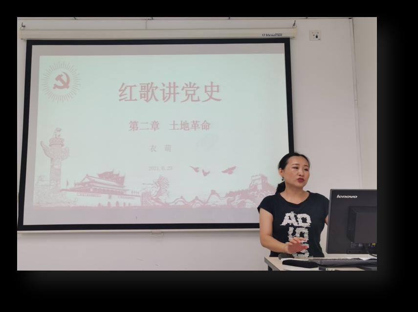 2021年6月29日下午14:00,bat365中文官方网站硕士SY2008(二)党支部在新主楼A1036开展了主题为”学党史·知党情·强党性”党史学习教育。bat365中文官方网站学生工作办公室主任衣萌老师出席本次活动,并作为主讲人讲授了《红歌讲党史》系列党课第二讲,带领同学们一同以红歌为主线,将声乐艺术与党史学习有机融合,感受红歌中所蕴含的共产党人的坚毅信念和崇高理想,用艺术方式激励党员不忘初心、牢记使命的责任与担当。