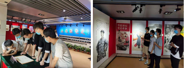 师生党员还参观了正在展出的“永远跟党走——庆祝中国共产党成立100周年全国铁路美术作品展”。一幅幅美术作品真实而生动地记录和印证了中国铁路在中国共产党领导下取得的辉煌成就、巨大进步以及人民铁路为人民的初心和宗旨。师生们深切感受到了在党的领导下,新中国工业发生的翻天覆地的变化。