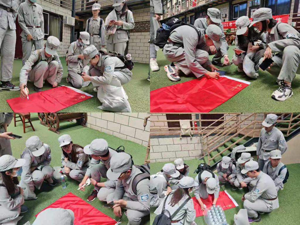 在大庄科红色教育基地,学员们身穿八路军军服,成立红船、井冈山、延安和西柏坡4个临时支部,通过制作支部标志和唱红歌的方式,学习红船精神、井冈山精神、延安精神和西柏坡精神。