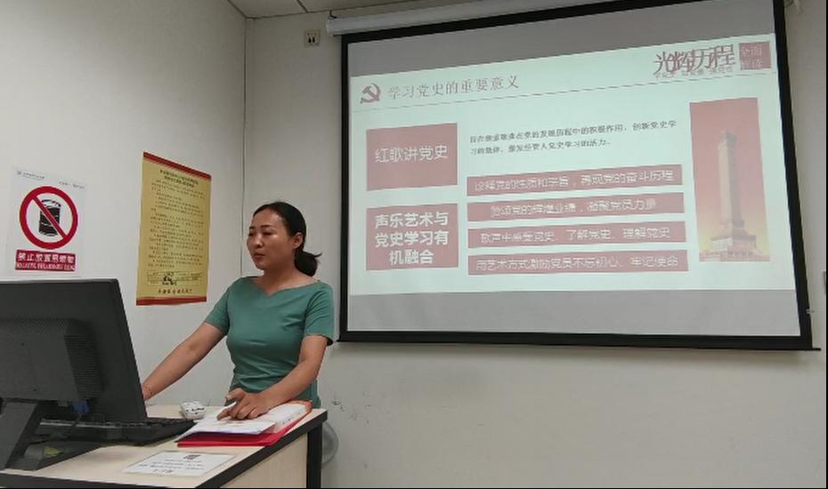为庆祝中国共产党成立100周年,落实党史学习“学史明理、学史增信、学史崇德、学史力行,学党史、悟思想、办实事、开新局”的要求,经管学院组织开展“红歌讲党史”系列主题学习活动,共同体悟红歌中蕴含的理想信念力量。系列活动第一讲在SY1908(一)党支部开展,由学院研究生工作办公室主任衣萌领学主讲。